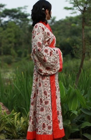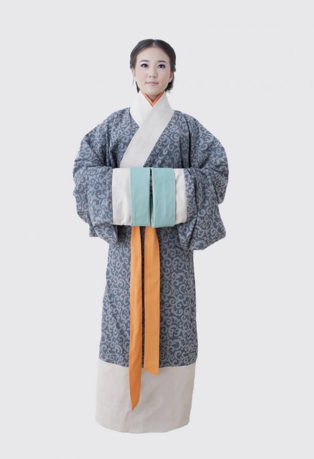 汉代以后,由于内衣的改进,盛行于先秦及西汉前期的绕襟曲裾已属多余,本着经济胜过美观的历史发展原则,至东汉以后,直裾逐渐普及,成为深衣的主要模式。