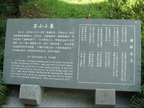 传说苏小小死后葬于西泠桥畔,前有石碑,题曰:钱塘苏小小之墓。苏小小墓在杭州的知名度可谓家喻户晓。据传说苏小小死后,芳魂不散,常常出没于花丛林间.据史书记载,宋朝有个叫司马樨的书生,在洛下梦一美人搴帷而歌,问其名,曰:西陵苏小小也。问歌何曲?曰:《黄金缕》。后五年,才仲以东坡荐举,为秦少章幕下官,因道其事。 少章异之,曰:“苏小之墓,今在西泠,何不酹酒吊之。”才仲往寻其墓拜之。是夜,梦与同寝,曰:妾愿酬矣。自是幽昏三载,才仲亦卒于杭,葬小小墓侧。