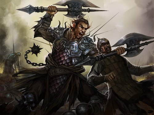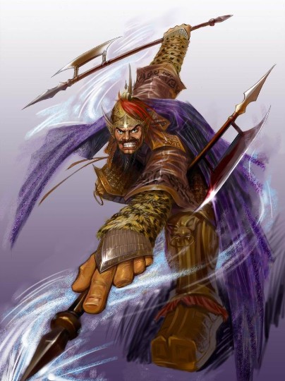 典韦是陈留己吾人。他形貌魁梧,膂力过人,使一双各四十斤的铁戬,有大志气节,性格任侠。其时同乡刘氏与睢阳人李永为仇敌,典韦便为刘氏报怨,自此为豪杰之士所赏识。初平年间(190-193),张邈举义兵时,征典韦为士,隶属于司马赵宠。军中的牙门旗既长且大,人们都不能把它举起,而典韦竟以一手便将其执而竖起,司马赵宠惊异其怪能巨力。后来典韦转属夏侯惇,数次斩首有功,拜为司马。