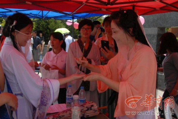 端午节又称五月节,在古代是夏季驱瘟辟邪的日子,人们通过赛龙舟、悬粽叶、射五毒、吃粽子等民俗,祈求平安吉祥。华商记者了解到,参与端午汉服活动的年轻人都是从宝鸡汉服QQ群上结缘的,这次与宝鸡文理学院北辰文学社携手举办端午汉服活动,是因为参与者对于中国的传统文化都十分感兴趣。他们希望通过举办这样的活动,向更多的人展示中国的传统文化,尤其是传统着装汉服。