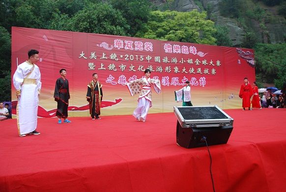 厚重沉稳的汉制汉服、雍容华贵的唐制汉服、清雅脱俗的宋制汉服...数十位佳丽身着汉服在古朴优雅的音乐伴奏下依据设定情景进行美妙绝伦的展示表演,让人仿佛穿越时空,沉浸于古典之美。活动旨在将汉服的端庄大气与龟峰的美丽景色完美结合,宣传国色汉服之美,推介龟峰的旅游文化形象。