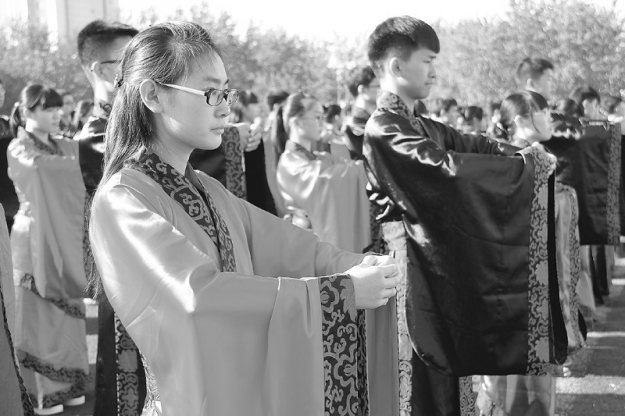 10月12日,邯郸市第四中学高三年级学子在校团委的组织下,举办了以“成长、成人、成材”为主题的汉服成人礼。据悉,此次集体成人礼为邯郸市首次汉服集体成人礼,参加人数2000余人,其中300余人着传统汉服,行传统礼仪,齐诵《少年中国说》,拜炎黄、拜父母、拜师长。