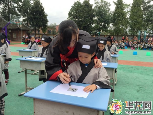 据铜梁区安居小学校长陆洪荣介绍,“入学礼”被视为人生的四大礼之一,举办“破蒙”仪式是为弘扬中华传统文化,培育具有“中国灵魂、创新精神”的未来人。