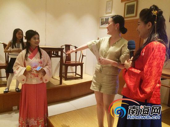 整场活动除了李荣的精彩演讲,华夏礼仪的展示环节也倍受欢迎。现场,罗婷和她的同学身着古典的传统汉服出现,展示汉服礼仪和舞蹈,一颦一笑夺人眼球。罗婷告诉记者,为了传承汉文化,海南大学联合省内4所高校,成立了“有衣云裳”汉服群,身着汉服,在中秋举行拜月活动、三月初三、祭孔活动。尽管在校园里身着汉服会引来周围一些同学的围观和议论,但淡定的她们还是坚持“将汉服进行到底”,目的就是为了让更多的人了解中国传统文化。