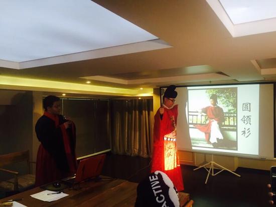 2015年11月21日下午, 在智慧山滨海印吧,慢生活·东方艺术沙龙在寒冬将至时迎来了第八期活动,本期沙龙以华夏衣冠·汉服文化为主题,天津汉服社社长徐萌老师带领大家一起走入汉服的世界,在详细介绍过汉服的文化后,还特别展示了一场独特的汉服婚礼秀,让参与活动的来宾能够在传统衣冠文化世界中体验华夏文明美轮美奂的境界。