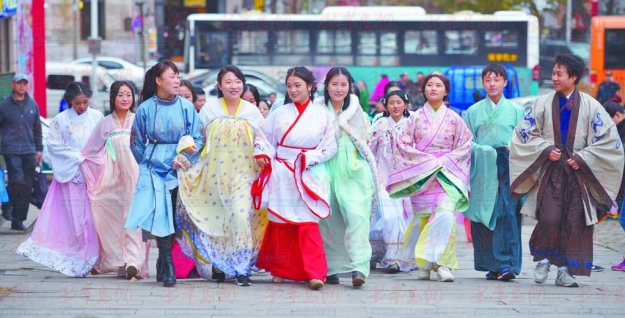 提到中国传统服装,很多人对满族样式的旗袍和立领的中山装比较熟悉。但近年来,越来越多年轻人喜欢上了汉服,从汉代的曲裾、唐代的齐胸襦裙、宋代的褙子到明代的袄裙,汉服种类丰富,气质优雅。参加这次活动大二男生后扬说:“汉服可以带来一种归属感。”可以这样说,年轻一代在各国文化的交流碰撞中长大,越发想找回自己民族的感觉,着汉服是在寻根。