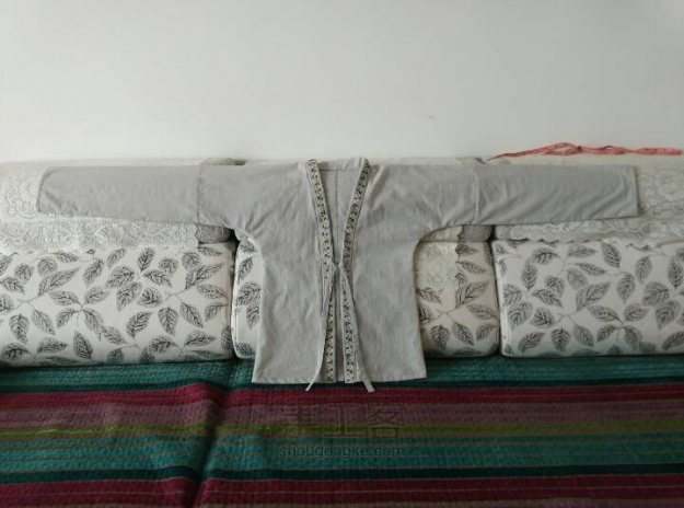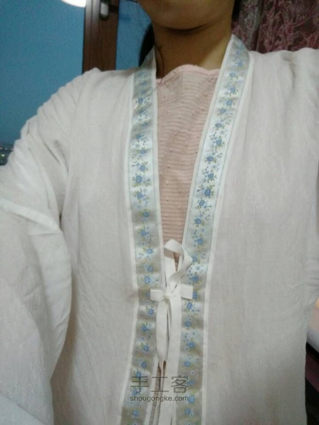汉服对襟上儒的制作 手工客 2016-02-19 04:10 可以当防晒衣穿,其实很简单。先要了解构造,还要知道什么事来去缝主要材料:棉布1.5/烫衬所需工具:缝纫机/剪刀/尺子/白纸制作步骤: 我是按照这个裁剪图,然后按照自己的数据修改了一些。 衣服主体,领子,系带,接袖四部分构成做衣服就是先从细节下手,先做领子,烫衬将两部分缝合烫平缝份一面折进去一厘米,熨烫一面折进去0.7,熨烫。处理中缝,我没有剪开,直接压线。翻过来,正面压0.1的明线。这样的好处就是看上去更加工整,而且每次洗完以后不用熨烫。高级服装工艺里都是这样效果接袖,来去缝。不会的,我有一个教程讲了来去缝,可以去看看接袖完毕,之后将底边和袖口进行包边处理装领子了。将折进去一厘米的正面和衣服中缝那里正面相对,用珠针固定一圈,缝合。记住,最好从中间缝,要不很容易歪底边要折进去,然后压线效果另外一侧用珠针固定正面压线,一样,从中间缝系带压线完事啦。