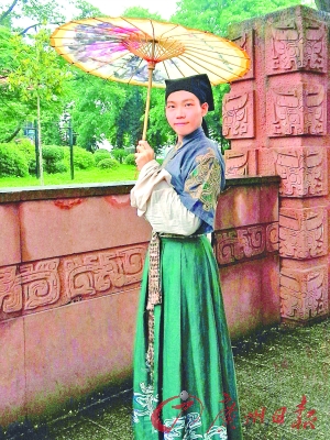 在越来越重视传统文化传承的今天,各大高校也纷纷加入到这个行列。汉服的美并非华而不实,相反,它充满中华民族的文化内涵和人文情怀,以及其他现代服饰所不能比拟的魅力。身为汉服爱好者,平时爱看诗经、唐诗宋词等书籍的华师学子沈瑶玲,是个喜欢慢节奏生活的女生。她一直都很喜欢充满民族气息的服饰,有一次在杂志上看到璇玑姑娘的倩影,从此便难以忘怀。去年的乞巧节,沈瑶玲第一次参加广汉会的活动,在深入了解之后,更是深深地爱上了汉服文化。在不同款式的汉服中,她最喜欢的是对襟。“都说唐宋时期是中国最强盛的时期,对襟服饰到唐宋,发展达到一个高峰,款式比较多样,充分反映了唐宋时期中国对襟服饰的普及。它那翩翩的水袖,清新淡雅的姿态,怎能不让人为之动容呢?”当然,她笑着表示自己平时并不会穿汉服出行,因为怕显得太突兀,一般是偶尔参加广汉会的大型活动时才会穿。
