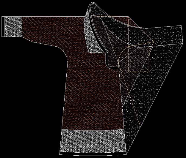 垂胡袖的袖根处是尖的不是弧形,这也是有道理的,其实弧形袖根真的很难看,除非你是打算做窄袖。
