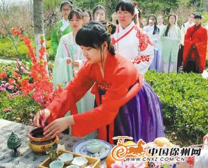 中断800年"花朝节"重现徐州 汉服少女祭祀花神