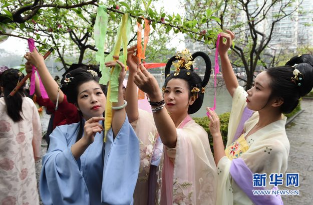 花朝节里度春分 女子穿汉服表演祭花神祈福