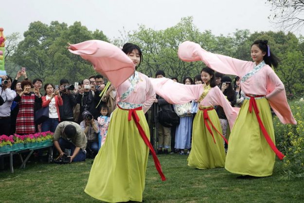 汉服游花朝 百花迎峰会 杭报在线 2016-04-10 10:36 上一页 1/5 下一页 4月10日,百余名身着传统汉服的青年男女相约来到正在举办“花朝节”的西溪国家湿地公园绿堤景区,赶赴一场“汉服游花朝,百花迎峰会”踏春雅集活动,在缤纷绽放的花海之间展汉仪、起汉舞、奏民乐、吟古诗、放纸鹞……,展示汉民族的传统文化,感受大自然的美丽春色,传递峰会年的杭州之美。