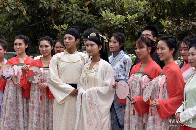 2016年04月09日,河南省洛阳市,结成汉文化研究社团的洛阳青年一起合影,汉式文化鉴赏成为一种时尚。