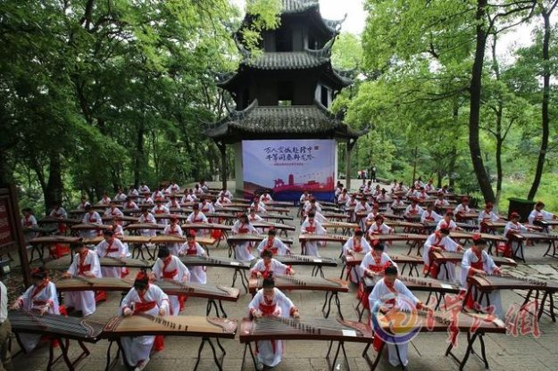 古筝爱好者身着汉服 千筝同奏乐曲传承三国文化 襄阳晚报 2016-04-26 12:49 4月24日,我市青少年古筝爱好者身着汉服演奏乐曲。当日,一场“千筝同奏《卧龙吟》”的古筝文化活动在古隆中风景区举行,近千名青少年身着汉服,用古筝弹奏《卧龙吟》等曲目,传承三国文化。