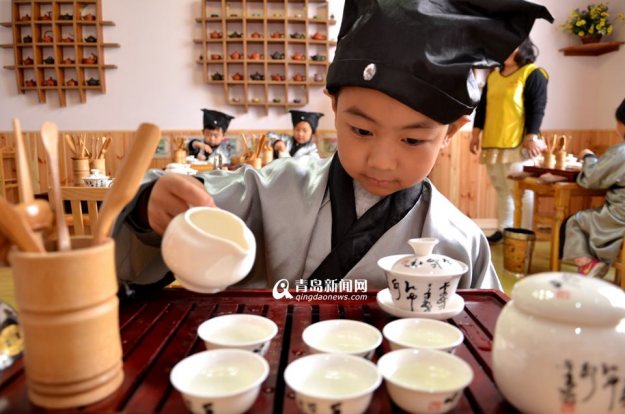 小萌娃穿上古色古香的汉服表演茶道,一板一眼写着毛笔字……昨天上午,李沧区雅荷幼儿园“快乐中国娃”传统文化主题特色周活动邀请家长与孩子一起,体验中国的零距离体验中国文化。