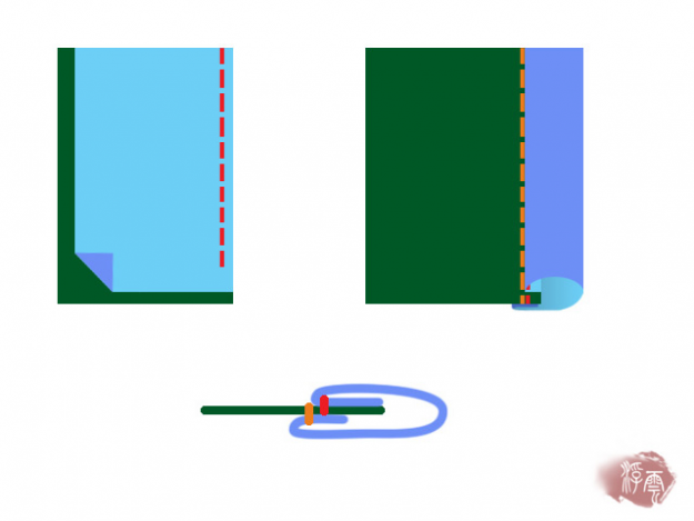 漏落缝效果,下面平整的是正面,上面翻过来能看到线迹的是反面(图七)