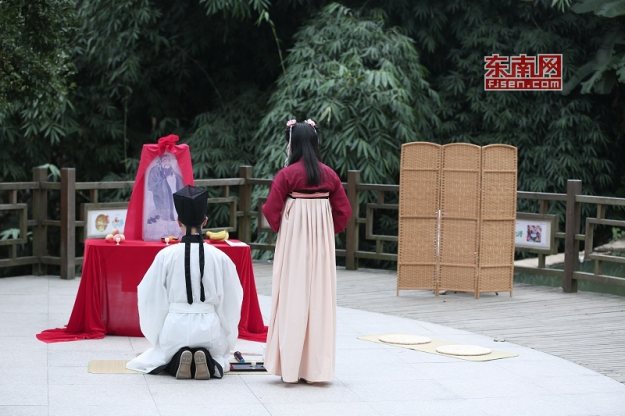 当天下午展示的笄礼就是我国汉民族最传统的成人礼仪,参礼人员有赞礼、正宾、笄者、赞者,全部由宁德市汉服文化协会的成员担任。
