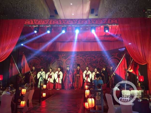 沃盥之礼、同牢之礼、合卺之礼……这些古代的礼仪,你知道哪些?8月27日,在渝中区一酒店内,满眼是古香古色的红毯,红色的喜烛、礼器,你可能以为这里正在拍古装“穿越剧”,其实,这是一对90后举行的“汉服婚礼”,这对新人以不同寻常的方式,结束了6年的爱情长跑,开始新的人生旅程。