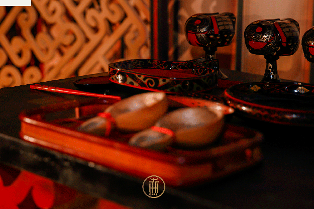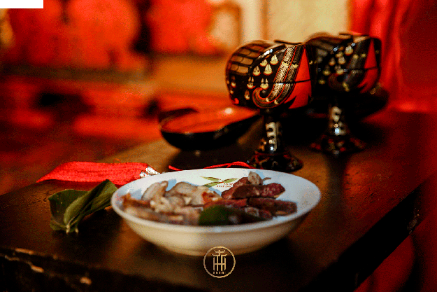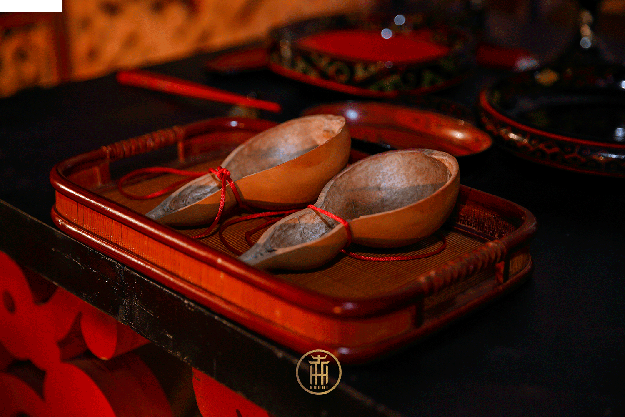 ●共牢而食举案齐眉真相敬,举手同牢互心倾。夫妻共食盘中物,相濡以沫永搀扶。华夏传统之中,崇尚节俭,新人共食一牲之肉,同品脍炙,以贺此刻吉庆大礼!