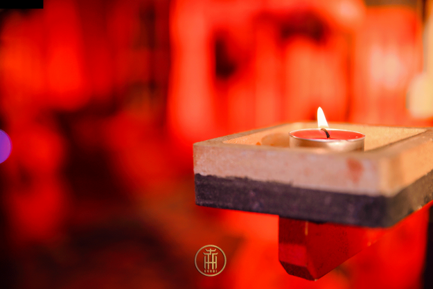 山前灯火欲黄昏,吉时已至,侍者点烛,灯火阑珊映着远处昏色初降的群山。正婚礼伴随着一声声热闹的绚烂烟花而徐徐开始。