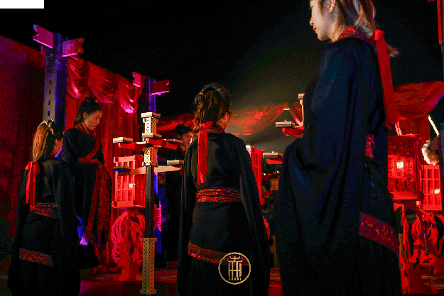 ●亲迎之礼 长乐未央,庭燎之光。言念君子,玄衣纁裳。新婿邀新妇登台入礼!