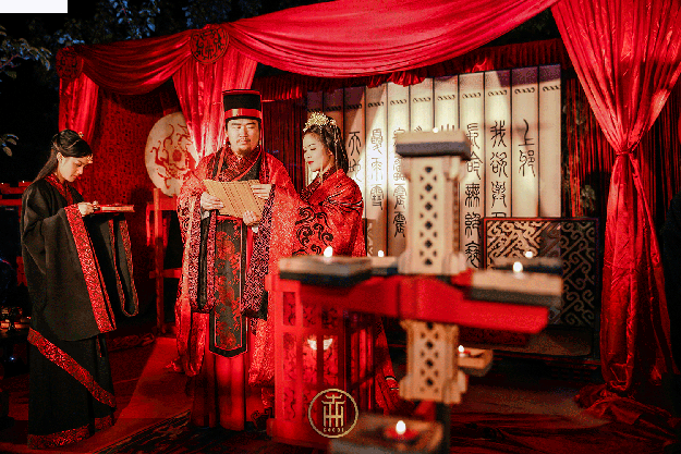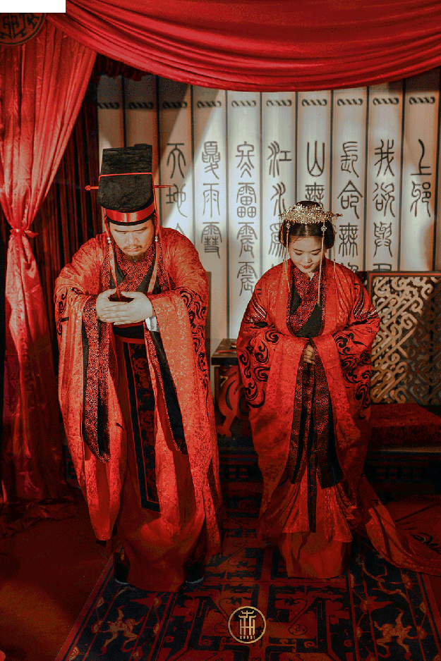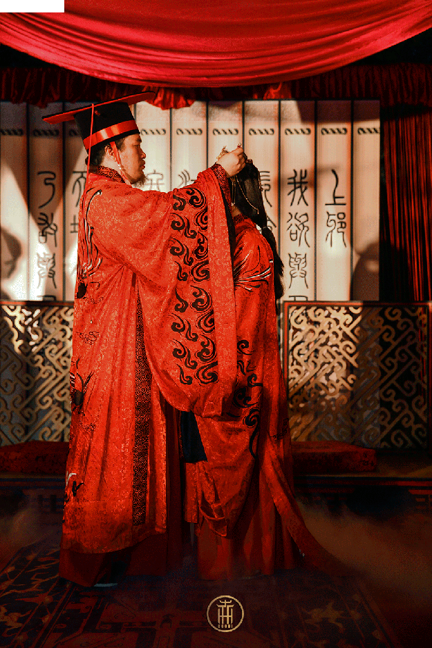 古时结婚黄昏举行,取其阴阳交替有渐之义,故称昏礼。不举乐,不庆贺,重的是夫妇之义与结发之恩。婚礼庄重大气而不失热烈,美好不缺浪漫。
