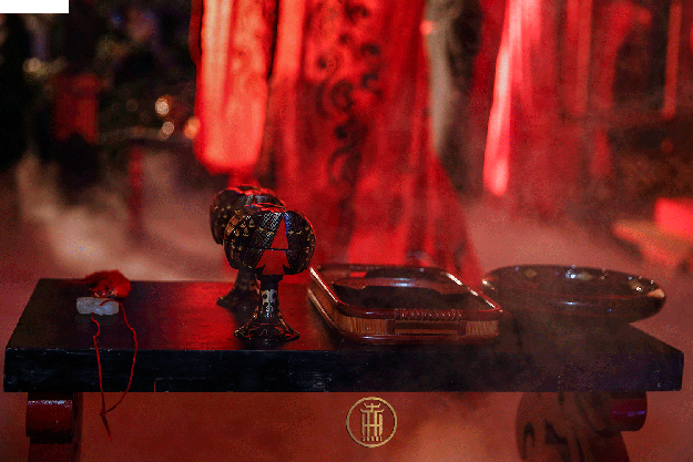 ●酹酒祭天 “婚礼者,将合两姓之好,上以事宗庙,而下以继后世也,故君子重之”,婚礼让夫妇二人经此而合为一姓,是当之无愧的“礼之大礼,故进授玄酒,告谢天地祖先!