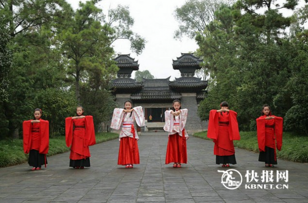 10月16日上午,快报网记者第三次来到张骞纪念馆。和前两次不同的是,这次纪念馆来了几个穿汉服的小学生。他们不仅为游客翩翩起舞,而且还当起了纪念馆的讲解员,其突出表现并获得大家的一致点赞。参天古树掩映下的张骞纪念馆,显得幽静而肃穆。那些身着汉服的小朋友门,俨然成了纪念馆里一道独特的风景线,吸引了众多游客与之合影留念。