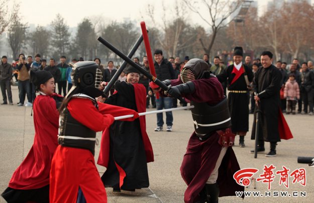 西安举行迎冬至汉服习武“打霸王”活动