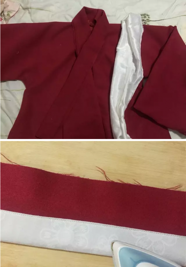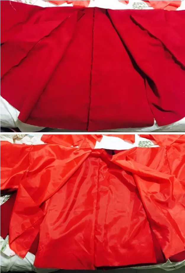 ➤布料:外层暗红色双面毛呢,红色里子布内衬。各2.5米。白色提花棉护领。共79.6元。