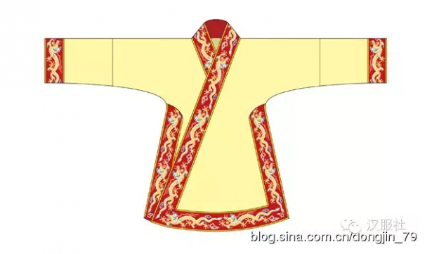 《周礼》以鞠衣为王后六服之一。《礼记正义》说:“郑注《内司服》云:•鞠衣,黄桑服也。色如鞠尘,象桑叶始生。’菊者,草名,花色黄,故季秋之月云•菊有黄华’,是鞠衣黄也,与桑同色,又当桑生之时,故云•黄桑之服’也。”唐代以鞠衣为皇后的亲蚕之服,形制同袆衣但无翟纹,用黄罗为之,其蔽膝、大带、衣革带、舄均随衣色。北宋皇后鞠衣与唐代大体相同。明初没有皇后亲蚕礼,因此将皇后的鞠衣用作燕居服(常服),与黄色大衫同时穿着,并参照汉晋皇后亲蚕服使用“深衣制”,但改为圆领式样。