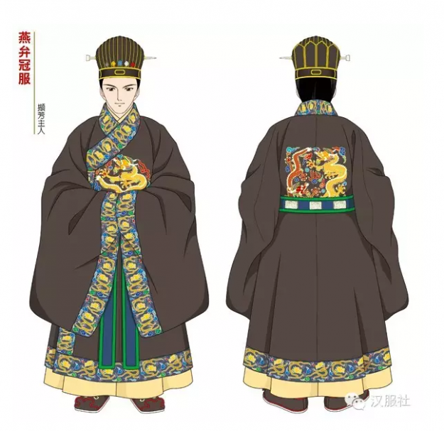 燕弁冠服是明世宗和内阁辅臣张璁参考古人所服“玄端”而特别创制的一款服饰,用作皇帝的燕居服。