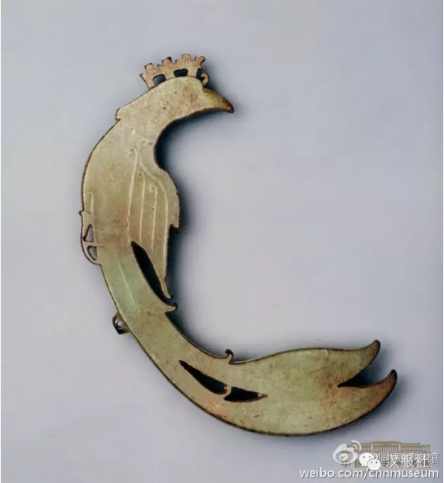 【玉凤佩】长13.8厘米,出土于河南安阳妇好墓。妇好是商王武丁的妻子,也是中国最早的女将军。她生前曾主持祭祀,从事征战,地位显赫。妇好墓墓室不大,但保存完好,随葬品丰富。