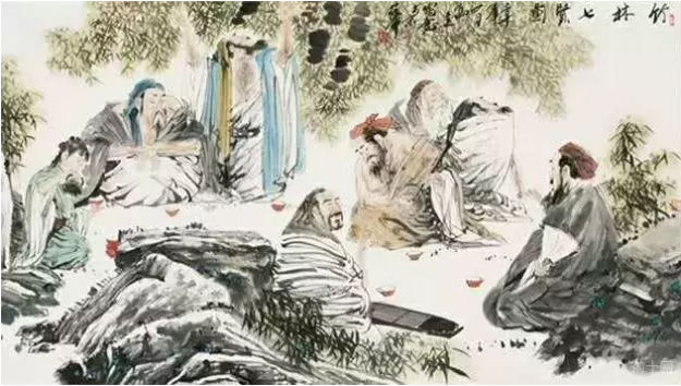魏晋南北朝时期服饰最大的特点是宽衣博带。宽衣,即宽大的衣服;博带,即宽大的衣带。这种衣服给人一种随性飘逸之感,也有人称此为魏晋风度。魏晋时期,政治黑暗,战争频繁,社会动荡不安,民众常常担心人身安全,才华更是无从施展。于是,许多人都崇尚老庄的那一套,把精神寄托在仙境中,追求及时行乐,这种思想在穿衣上的体现就是宽衣博带。竹林七贤——嵇康、阮籍、山涛、向秀、刘伶、王戎及阮咸这七个老友经常聚在竹林里喝酒、纵歌,肆意酣畅,穿柔软轻薄的衣服,腰系长带,随性不拘礼法。他们在当时算是文化名人,也就是相当于今天的明星了,看到自己的偶像这么穿,那一大票粉丝也就跟风力挺了。宽衣博带流行的成因除了以上这种说法,也有人分析其很可能与当时盛行的炼丹吃药有关,这种药是毒性很强的五石散。虽然在吃这种药之后会红光满面,皮肤变嫩,能给人一种返老还童、延年益寿的错觉,但这实际上就是在慢性自杀!那么问题来了:皮肤变得水嫩水嫩的,十分脆弱,也很容易磨破,紧身衣都不能穿了,怎么办呢?答:穿宽衣。