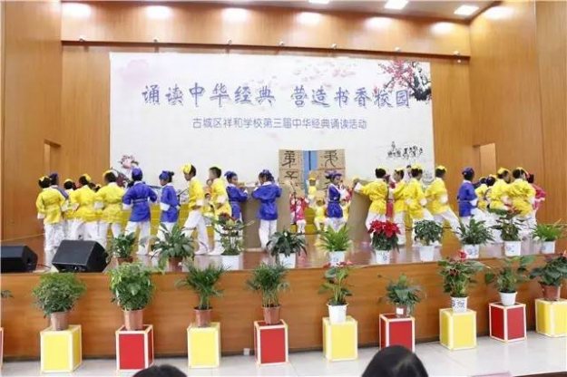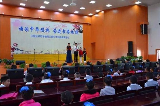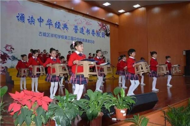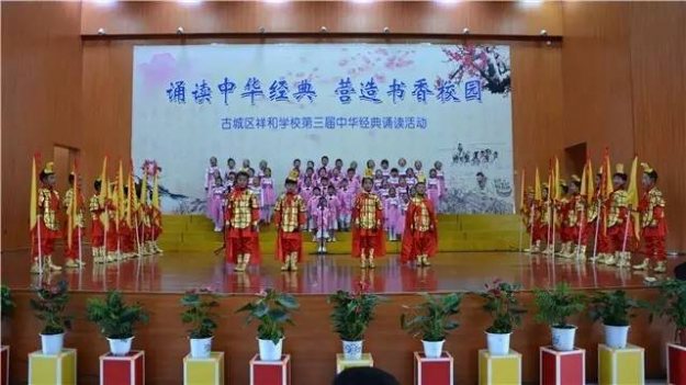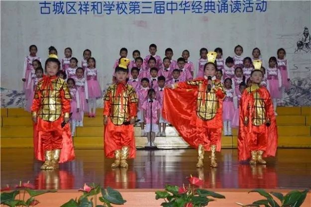 据悉,古城区祥和学校自开办以来每年如期会举行一次大型的经典诵读活动,主要是以集体参赛节目和个人诵读形式进行,今年已经是第三届诵读活动。活动在各个班级认真组织、精心辅导,层层选拔后进行朗诵比赛,选出集体参赛节目和个人或小组展演节目。活动不止有诵读,还有精彩纷呈的文艺演出,有优美的民族舞蹈,有相声……