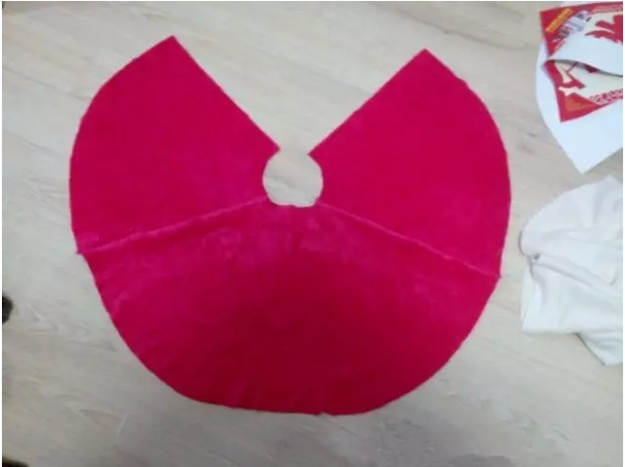 3.将裁剪好的斗篷布料按照下图连接,缝制起来,缝头为1厘米。当然是布料的正面对着正面,缝制反面,缝制完成后缝头的边也在反面。因为有挂里,不用锁边,也不用来去缝。