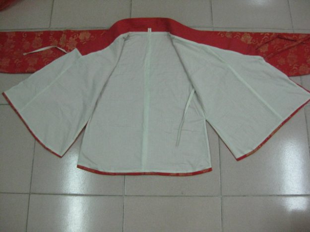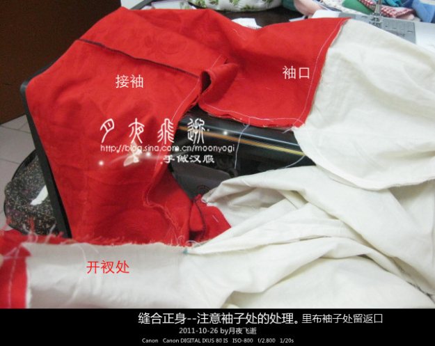 我这里的里布是先完全和表布一样裁剪下来,这样就能做到里外的接缝什么的,都对的比较整齐。其实里面是看不到的,接袖哪里什么的。也可以一整块布裁剪~