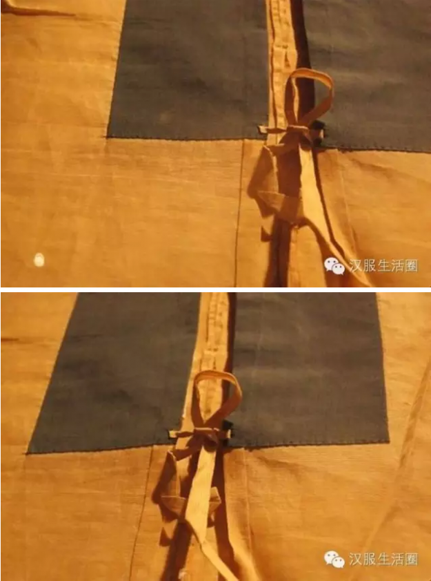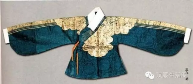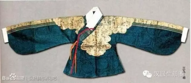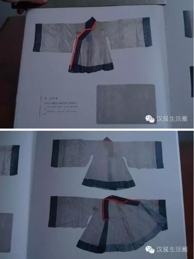 从上面两件衣服的例子可以看出这类裁法是在外襟接衽上保留一大块