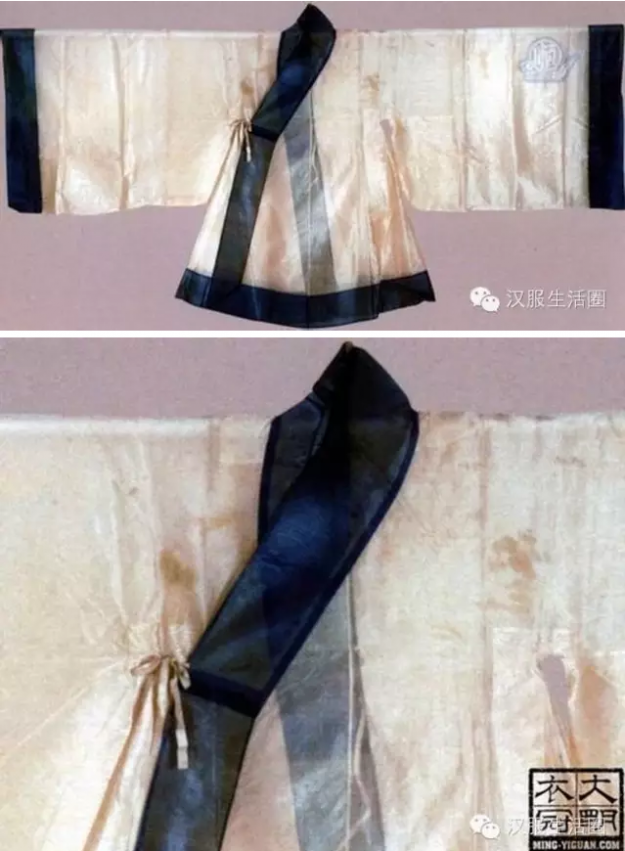 文物图孔府中单,因为是罗,所以能清晰看见领子内的状态: