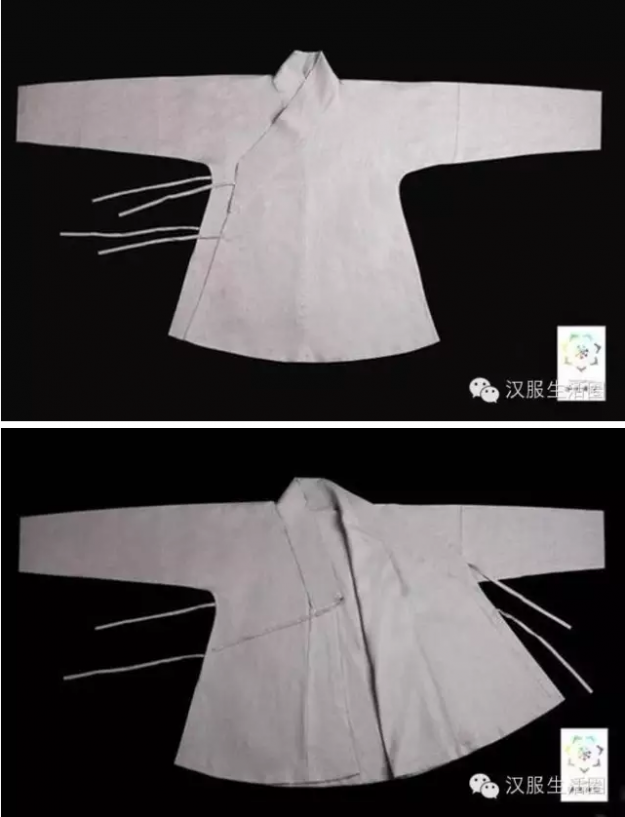 很明显啊,不管交领还对襟,领子末端都是明线的