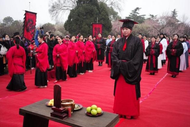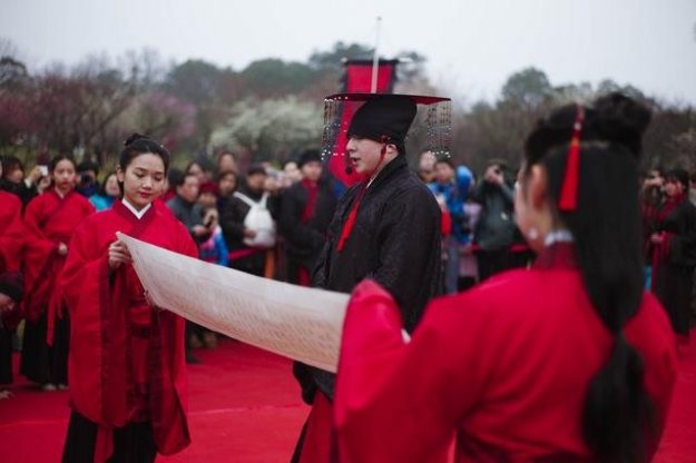 立春刚过不久,赏花的季节来临。由腾讯•大楚网携手东湖磨山梅园联合举办的2017梅园汉礼祈福盛典今早10:48分在东湖磨山梅园举行。
