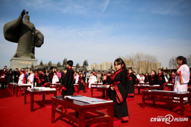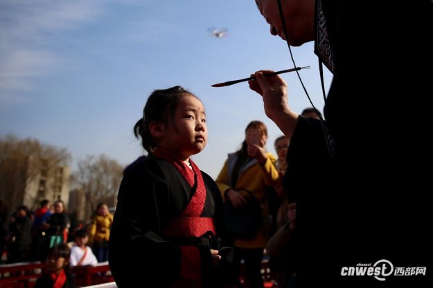 西安汉城湖举行传统汉服“开笔礼” 祈福开智迎新春