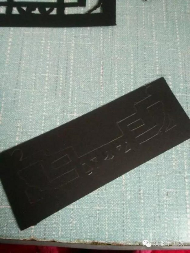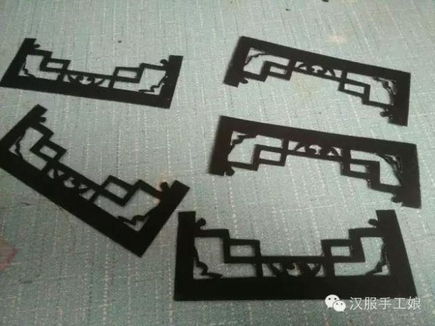 4、用黑色卡纸剪出窗棂样式的装饰物,宽与酒盒保持一致。用来贴在酒盒的四周。