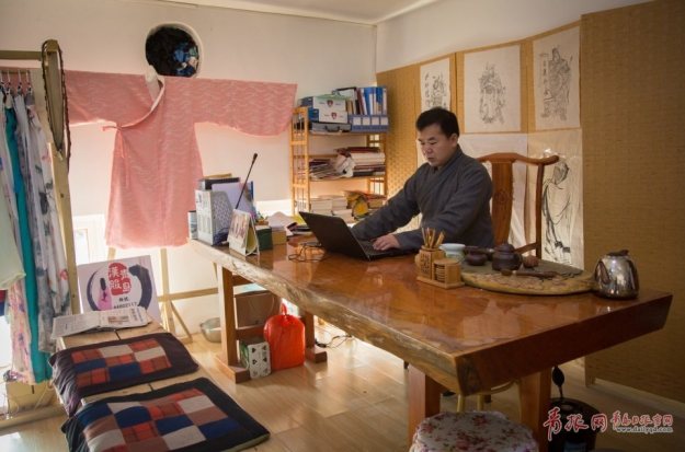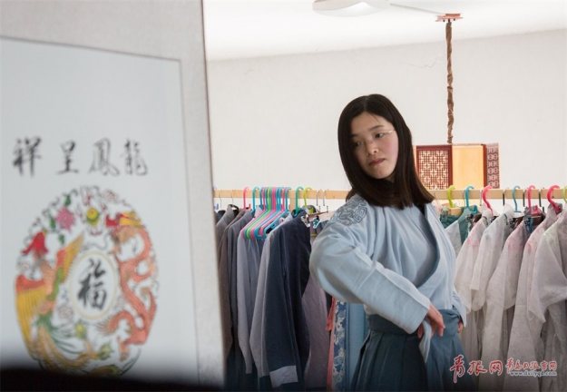 青岛汉服爱好者——生活在现代都市的“古代人” 青岛新闻网 2017-02-25 03:11 “七弦为益友,两耳是知音。心静声即淡,其间无古今。”如怨如慕的杳杳琴声,配上淡墨青衫、宽袍长袖,就是这把古琴的主人王中坤最钟爱的衣着。山东省青岛市的王忠坤就是一位生活在现代都市的“古代人”,他对汉服以及汉服背后中国传统文化的一种近乎执着热爱。“那时候,大家一有机会就会去各地的博物馆,找相关的文献古籍和出土文物,作为研究素材,然后把各自收集到的素材在网络群组里互通有无。”但汉服始终是一股小众的爱好,要让更多人都能感受到汉服的魅力,首先得让大家知道汉服是什么。王忠坤把对汉服和儒家文化的喜欢,当成了自己的事业,成立了自己的汉服会馆。除了做汉服的公益推广,王忠坤也会跟自己的朋友们一起设计、制作汉服。90后英子现在在王忠坤的汉服会馆工作,“最初就是因为看到了老师的汉服活动,后来也是着了汉服的魔,现在在汉服会馆工作,把自己喜欢的事情当作自己的事业,这应该是最幸福的事情了吧。”我们的汉服不光有古香古色、还原历史感的传统款式,也有中西合璧、加入现代元素的创新款。我们要做的就是把汉服的美发扬光大,让更多的年轻人骨子里喜欢这些东西。 山东省青岛市的王忠坤就是一位生活在现代都市的“古代人”,他对汉服以及汉服背后中国传统文化的一种近乎执着热爱。