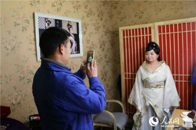 “这真的是我么?”“哎呀,想不到我老婆这么好看!”拿到新鲜出炉的的汉服写真照,大家惊喜不已,一边欣赏的丈夫开心得合不拢嘴。