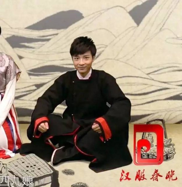 汉服春晚主持人苗霖身着圆领袍,利落帅气。