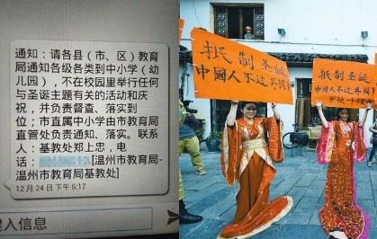 无独有偶。今年圣诞节,温州市教育局也被曝发文要求“不在校园里举行任何与圣诞主题有关的活动和庆典”。此消息一出,立即引发了网友的关注。一些高校学生也接连打出“抵制圣诞节,中国人不过外国节”、“争当华夏优秀儿女、反对媚俗西方洋节”的标语。