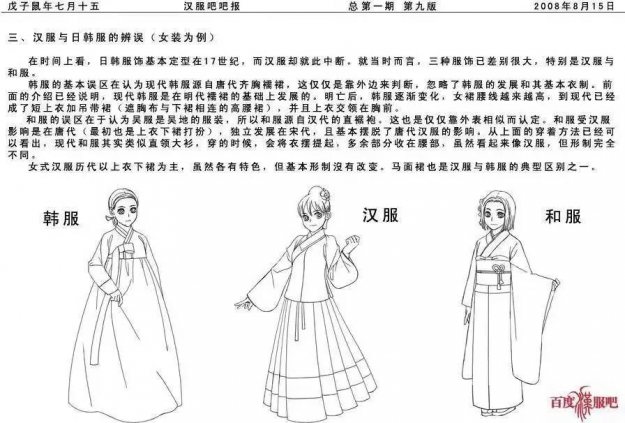 2. 汉服与和服,韩服(朝鲜服)唔,这是个极其尴尬的问题,相信很多小伙伴也遇到过,自己明明穿着汉服出门逛街,穿着自己民族的传统服饰,却常常被认为是少数民族甚至是日本人韩国人。这个嘛,也可以理解,小伙伴也不要过于气愤。毕竟相对于和服韩服来说,汉服中间有过断层(清断发易服),而和服韩服一直在传承发展,穿着走在大街上也不会被当做珍惜物种来看其实和服韩服(朝鲜服)追本溯源起来,还是和汉服摆脱不了干系的,这两者都是以汉服为蓝本借鉴模仿并加入本民族特点发展而来。可以说,汉服是和服韩服的老祖宗呢