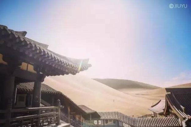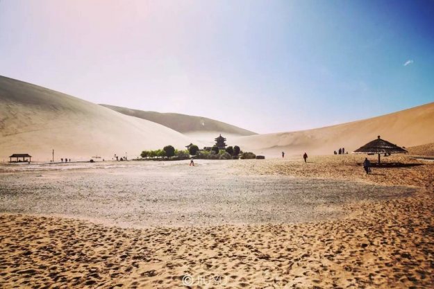 骆驼与行人茕茕穿行在沙漠边缘,队伍经过鸣沙山,才觉得有了可以落脚的地方。这里一座沙漠之城,清澈的泉水流淌在起伏的沙山之中,亭台楼阁犹如中原姿色……无数人停下来在此观望,凝视,期望能遇见自己,或是难得见到这般景色的感叹。