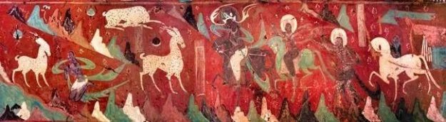 每一幅画面仿佛都蕴育着一个故事或传说,充满了传奇色彩。如「鹿王本生」,其故事性就让人流连寻踪……画面中九色鹿王静伫于河边,为救一个溺水之人暴露了自己,画面一转,九色鹿被人猎杀,此情此景之下九色鹿流下悲伤的泪水,王受感动,于是下令不得再伤害九色鹿,溺水之人最终因为出卖鹿王而自食恶果……